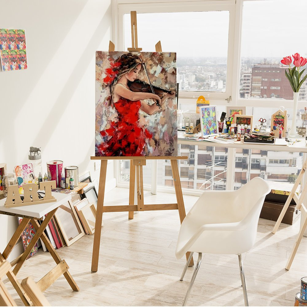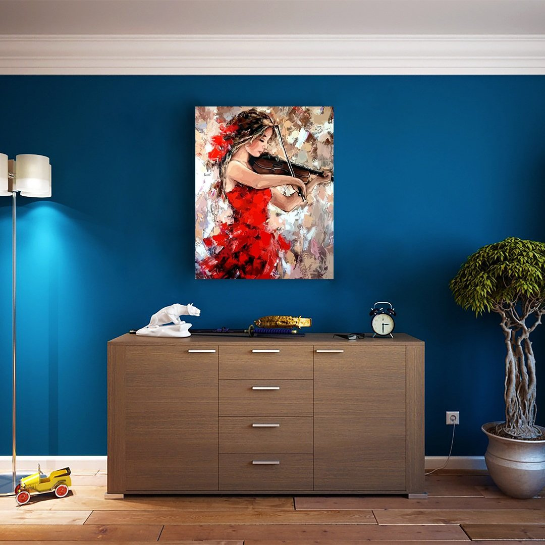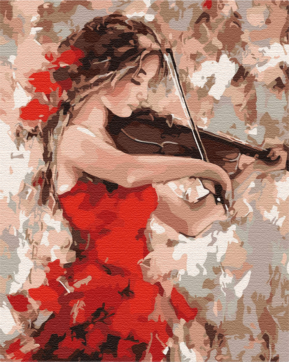 Malen nach Zahlen auf Keilrahmen – Frau mit Geige 50x40 cm Bild zum Ausmalen nach Zahlen