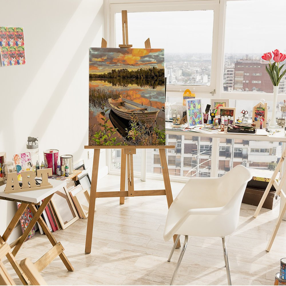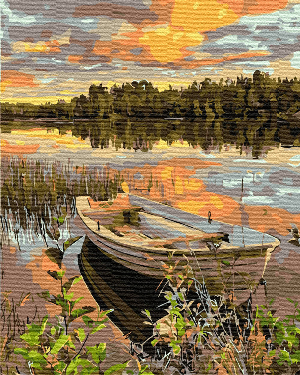 Malen nach Zahlen auf Keilrahmen – Boot bei Sonnenuntergang 50x40 cm Bild zum Ausmalen nach Zahlen