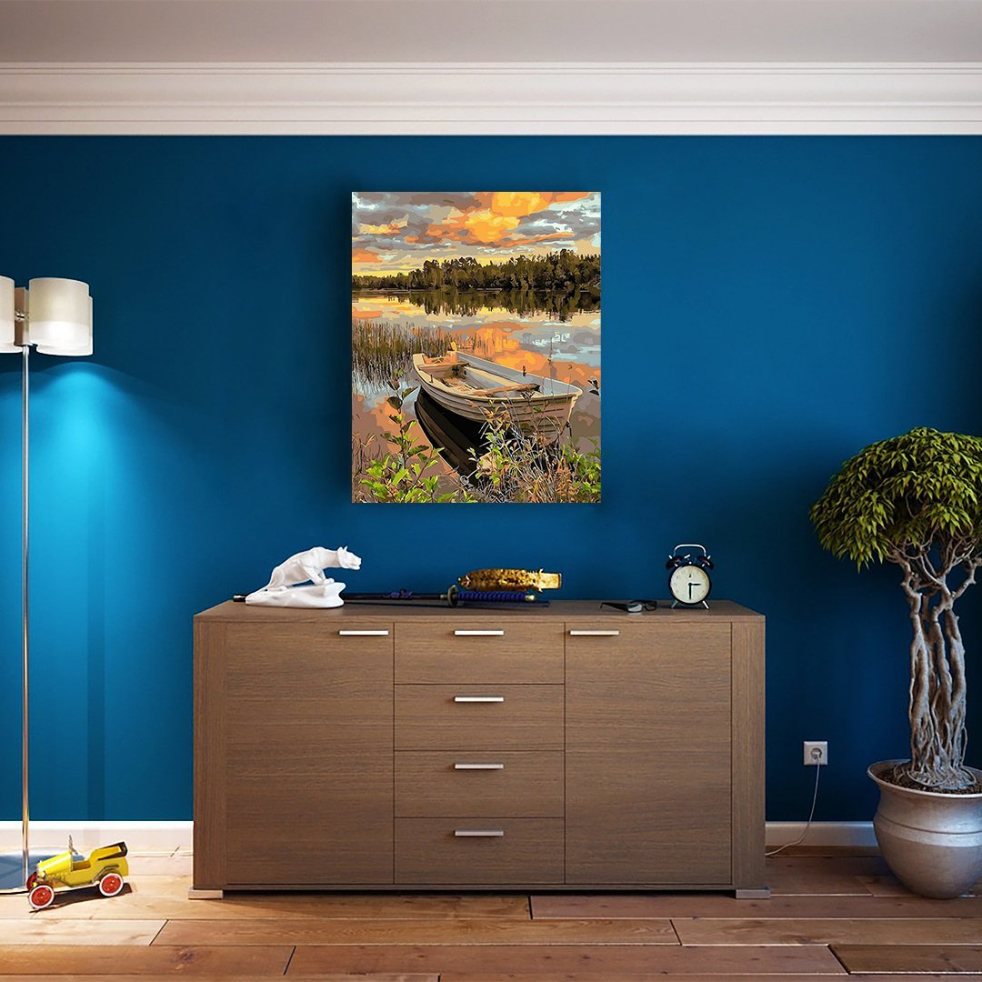 Das Malen-nach-Zahlen-Bild „Boot bei Sonnenuntergang“ können Sie für sich selbst oder als Geschenk für Teenager oder Erwachsene jeden Alters kaufen. Das Ausmalen bereitet garantiert viele vergnügliche Momente, und das fertige Werk wird zu einer wunderschönen und eindrucksvollen Geschenkidee, mit der Sie Wohnung oder Büro dekorieren können.