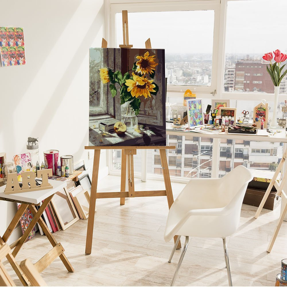 Das Malen-nach-Zahlen-Bild „Sonnenblume auf der Fensterbank“ können Sie für sich selbst oder als Geschenk für Teenager oder Erwachsene jeden Alters kaufen. Das Ausmalen bereitet garantiert viele vergnügliche Momente, und das fertige Werk wird zu einer wunderschönen und eindrucksvollen Geschenkidee, mit der Sie Wohnung oder Büro dekorieren können.