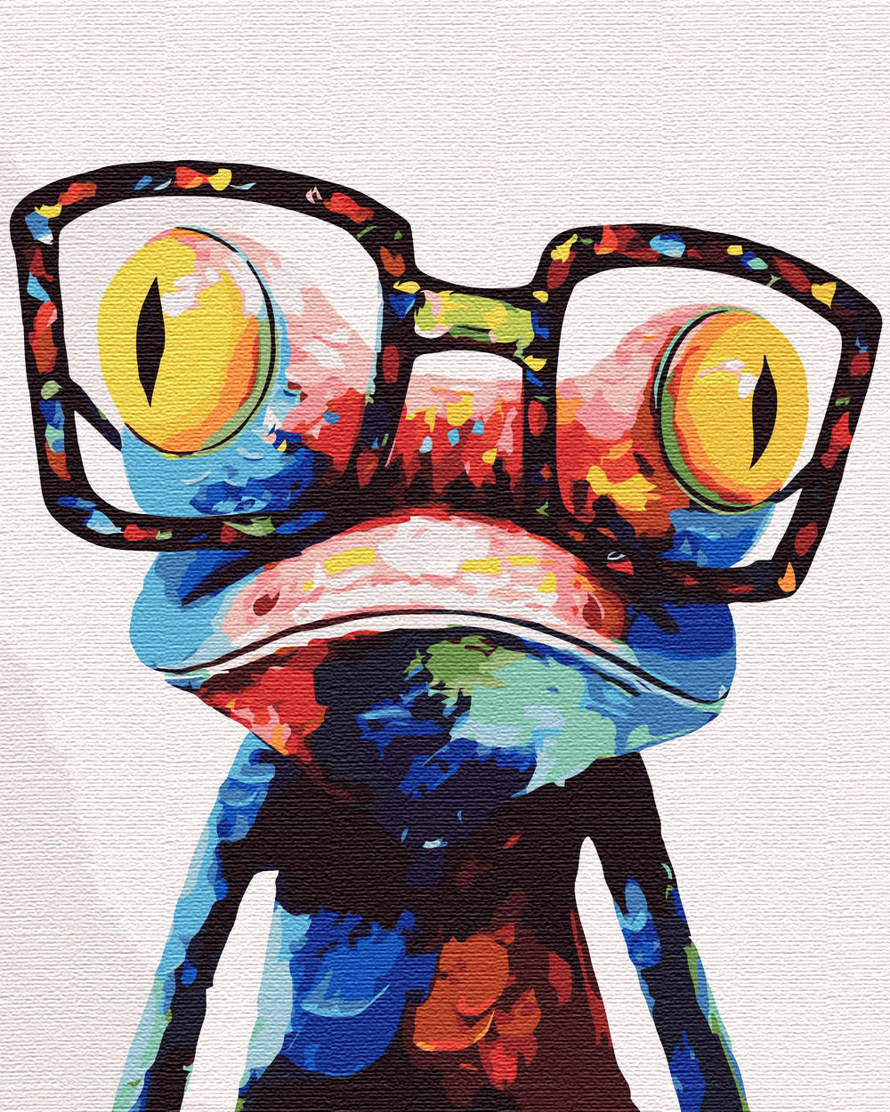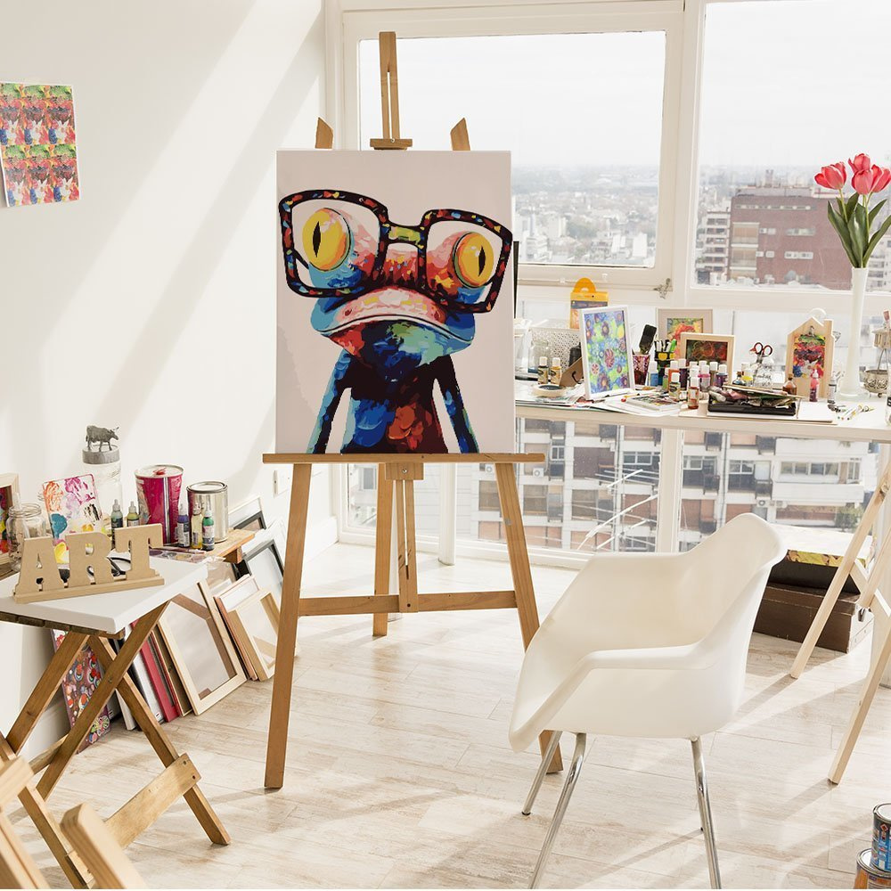 Malen-nach-Zahlen-Set Frosch mit Brille 50x40 cm auf Holzkeilrahmen