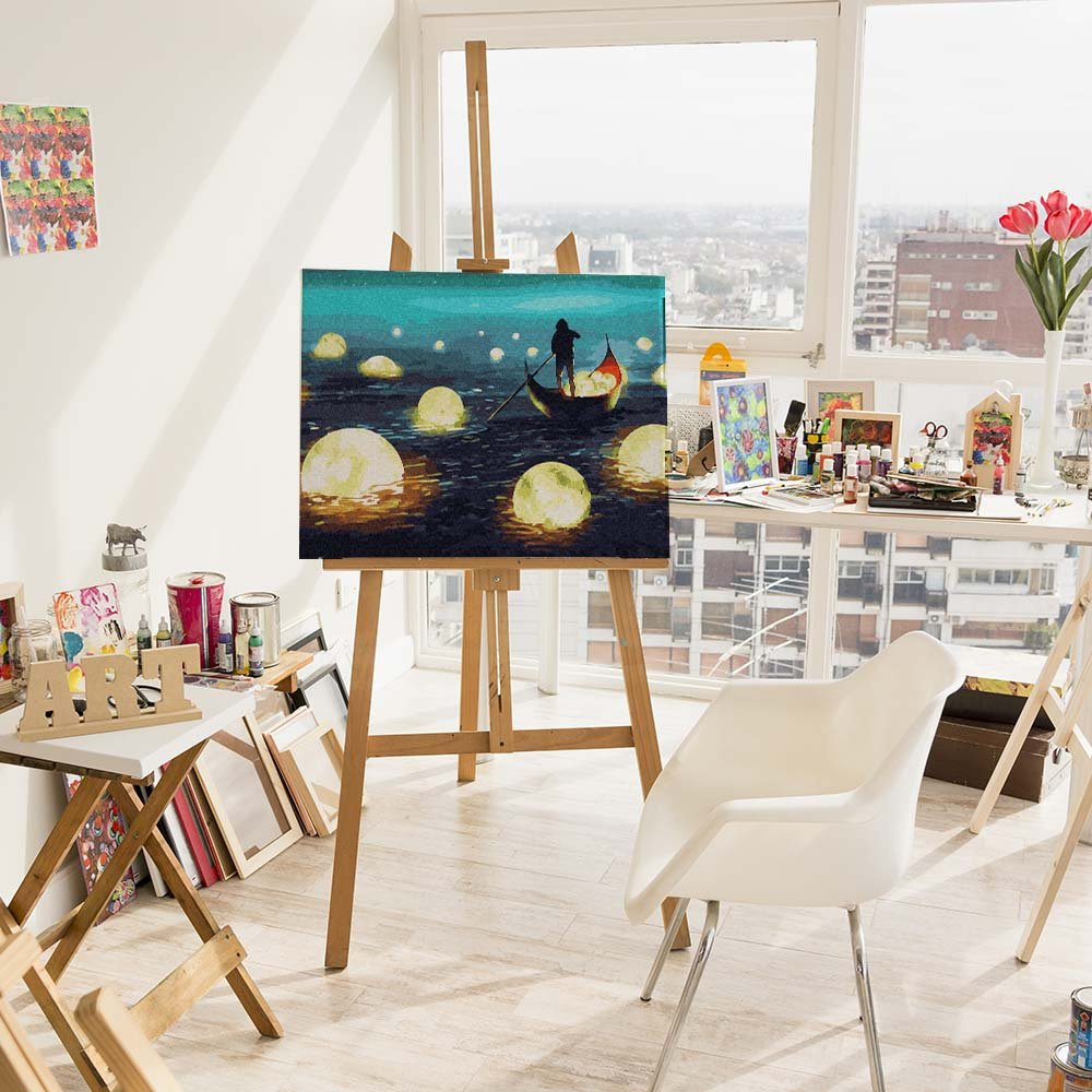 Malen nach Zahlen ist ein Set, bei dem das Motiv auf Leinwand in Segmente unterteilt ist. Jedes Segment ist mit einer Zahl versehen, die einer bestimmten Farbe entspricht. Bemalen Sie jedes Segment mit der passenden Farbe und Sie erhalten ein echtes, von Ihnen selbst geschaffenes Meisterwerk.