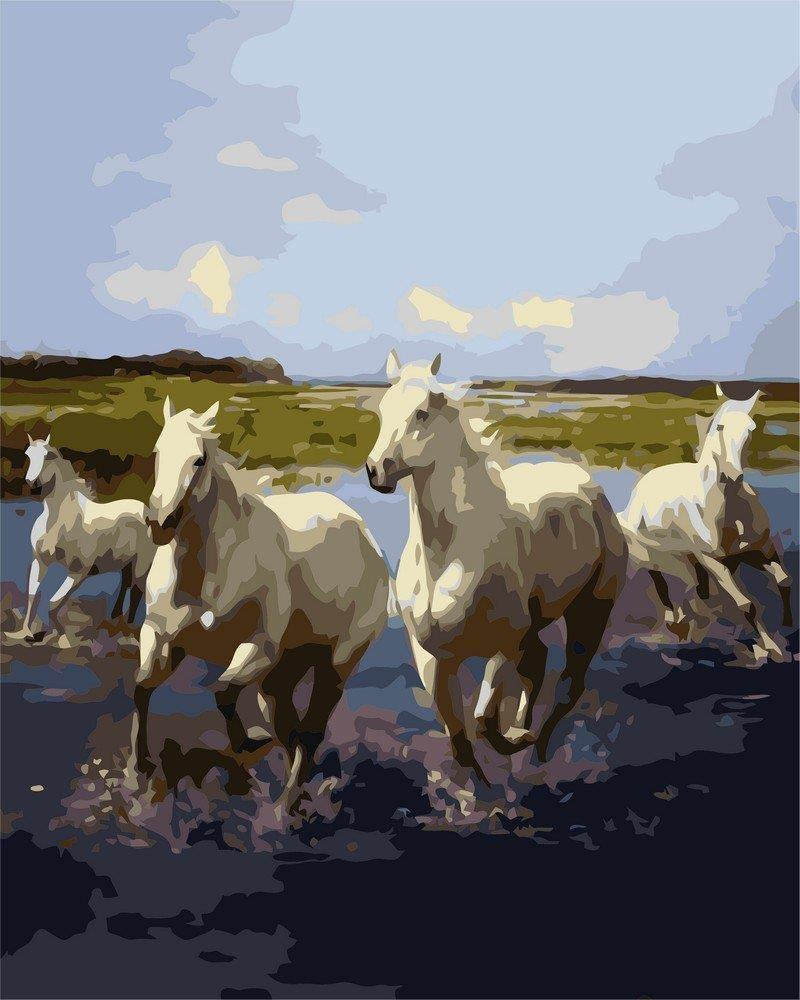 Zum Malen nach Zahlen einstellen Laufende weiße Pferde Gemälde nach Zahlen